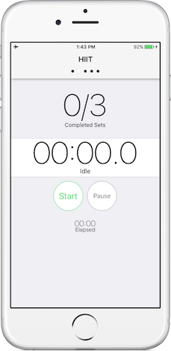 GymBrain supports high intensity interval training and will guide you though your HIT session from warmup to cool-down. As you'd expect it is fully configurable and can be activated with a single tap.