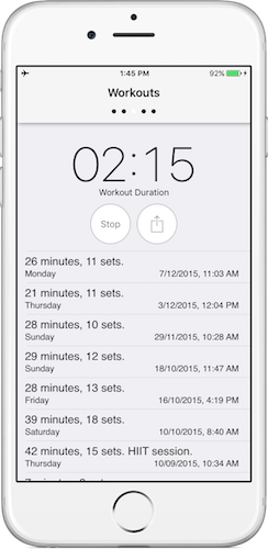 When your done, GymBrain will keep a record of your workout (safely stored on iCloud).